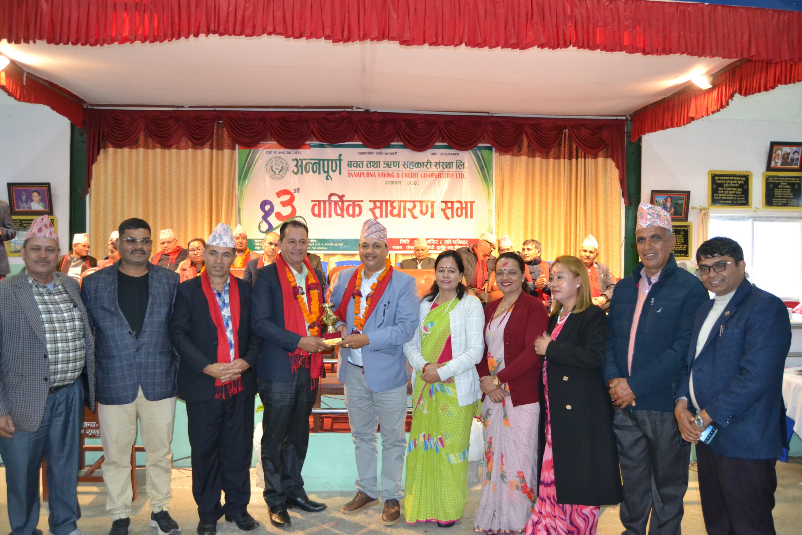 अन्नपुर्ण बचत तथा ऋण सहकारि संस्था लिमिटेडको १३ औं बार्षिक साधारण सभा शनिवार सम्पन्न भयो उक्त कार्यक्रममा प्रमुख अतिथि अन्नपुर्ण गाउँपालिकाका अध्यक्ष बिष्णु बहादुर केसी ले अहिलेको परिवेशमा सहकारिलाई बलियो बनाउन पर्ने सहकारिमा राखेको रकमलाई सुरक्षीत र सहि परिचालन गरी सेयर सदस्यको मनोवललाई उच्च राखी सजग भएर लगानी गर्नु पर्ने सुझाब दिनु भयो । सहकारिहरु धेरै भए अनुगमन गर्न पनि गाह्रो छ त्यसैले सहकारिहरु एक अर्कासँग मर्जर हुन जरुरि भएको उहाको भनाई थियो । समाज बाट स्थापना भएको यस संस्थाले सामाजिक क्रियाकलाप र जनताको अर्थिक गुणस्तर वढाउन पालिकाले खेल्नु पर्ने भुमिकामा कुनै कसर नराखी हातेमालो गरेर अगाडि बढ्ने बचन दिनु भयो ।