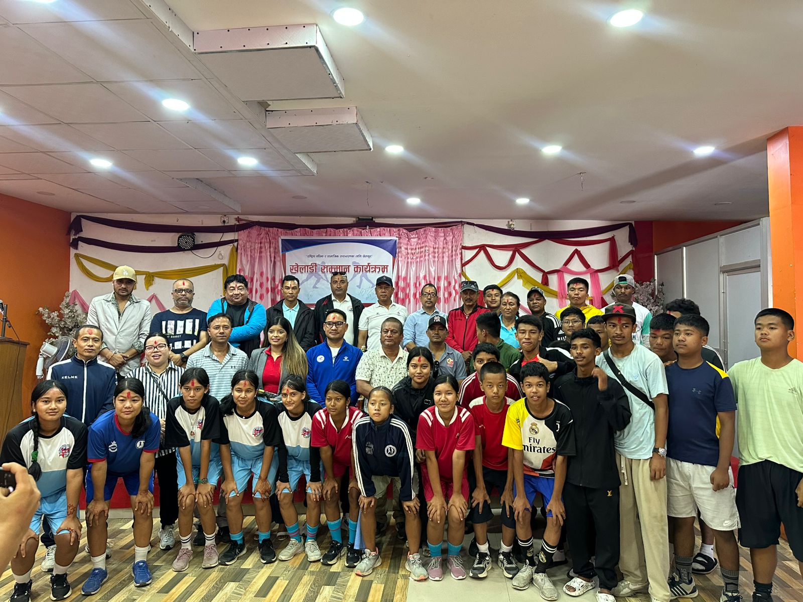 पोखरा । गण्डकी प्रदेश हक्की संघको आयोजनामा शुक्रबार हालै नियुक्त भएका प्रदेश खेलकुद परिषद्का सदस्यहरू लाई परिचयात्मक कार्यक्रममा हक्की खेलमा उल्लेखनीय योगदान पुर्याएका ३२ जना खेलाडीलाई नगदसहित सम्मान गरियो।