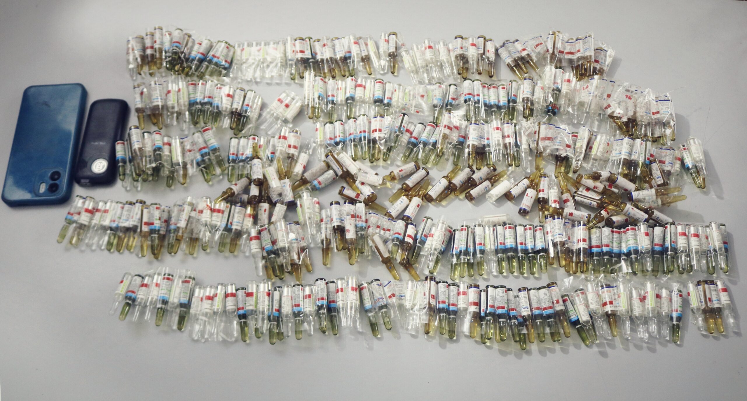 उनीहरूको साथबाट डायजापामका १४९ एम्पुल, फेनार्गनका १४७ एम्पुल र नर्फिनका १४७ एम्पुल गरी कुल ४४३ एम्पुल लागूऔषध फेला परेको छ । साथै दुई थान मोबाइल फोन पनि बरामद गरिएको छ ।
