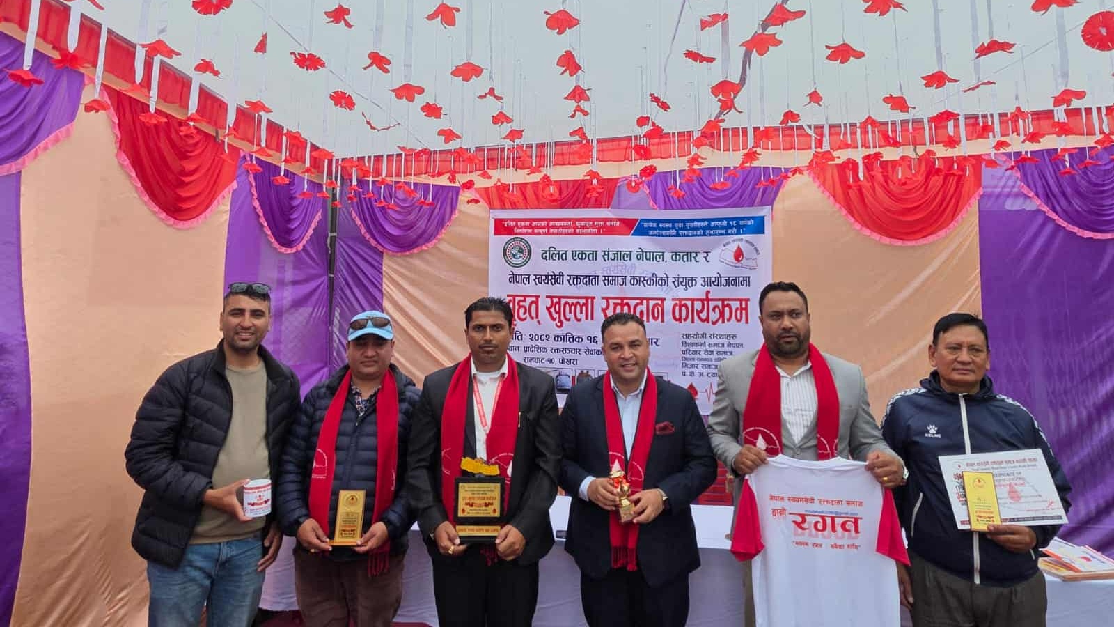दलित एकता सञ्जाल नेपाल, कतार तथा नेपालका अध्यक्ष प्रकाश विश्वकर्माको अध्यक्षतामा सम्पन्न भएको कार्यक्रममा स्वयंसेवी रक्तदाता समाज कास्कीका अध्यक्ष दिपेन्द्र अधिकारीले स्वागत र सदस्य हिरामणी भूषालले कार्यक्रम सञ्चालन गरेका थिए ।