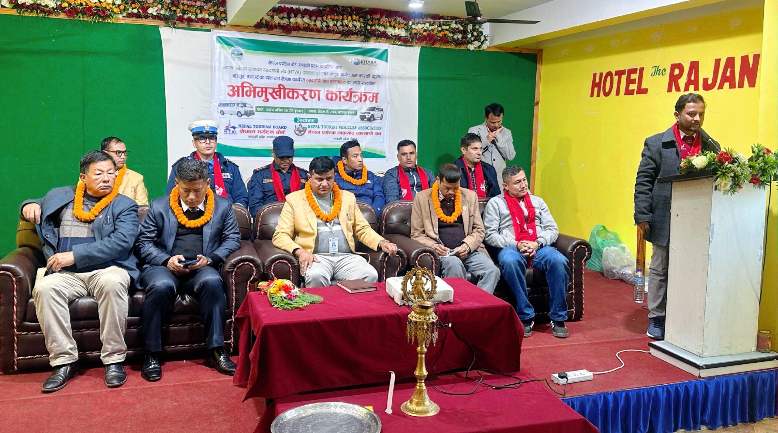 पोखरा । नेपाल पर्यटन बोर्ड गण्डकी प्रदेश कार्यालय तथा नेपाल पर्यटक यातायात व्यवसायी संघ(एनटिभिए) गण्डकी प्रदेशको संयुक्त आयोजनामा आज बाग्लुङमा कास्की, कुस्मा, बाग्लुङ र म्याग्दीका यातायात क्षेत्रमा कार्यरत व्यवसायी, चालक तथा सहचालकका लागि अभिमुखीकरण तालिम प्रदान गरिएको छ ।