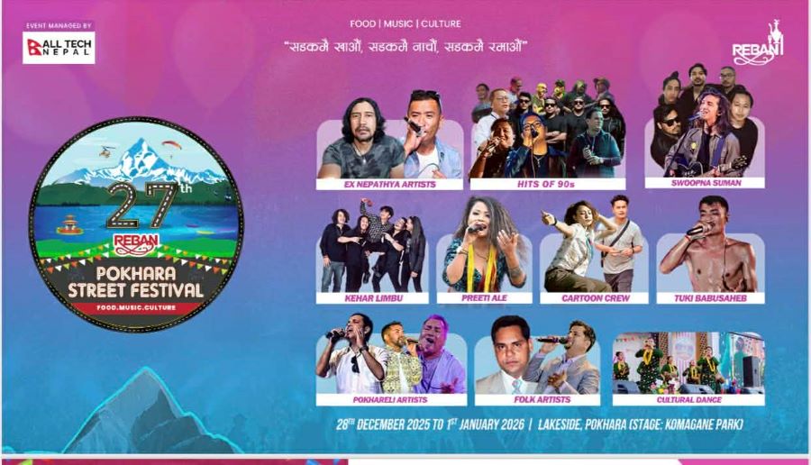 पोखरा । यसपालीको पोखरा सडक महोत्सव विशेष हुने भएको छ । किनकी रेष्टुरेण्ट एण्ड बार एशोसियसन नेपाल (रेवान) पोखराको आयोजनामा पोखराको लेकसाईड क्षेत्रमा हुने पोखरा सडक महोत्सवमा यस वर्ष हिट्स अफ नाईन्टिज गुञ्जिने भएको छ । लेकसाईडको ३ किलोकिलोमिटर क्षेत्रमा हुने महोत्सवको मुख्य आकर्षणको रुपमा रहने लाईभ सांगीतिक कार्यक्रम पोखरा कोमागाने पार्कमा आयोजना हुनेछ ।