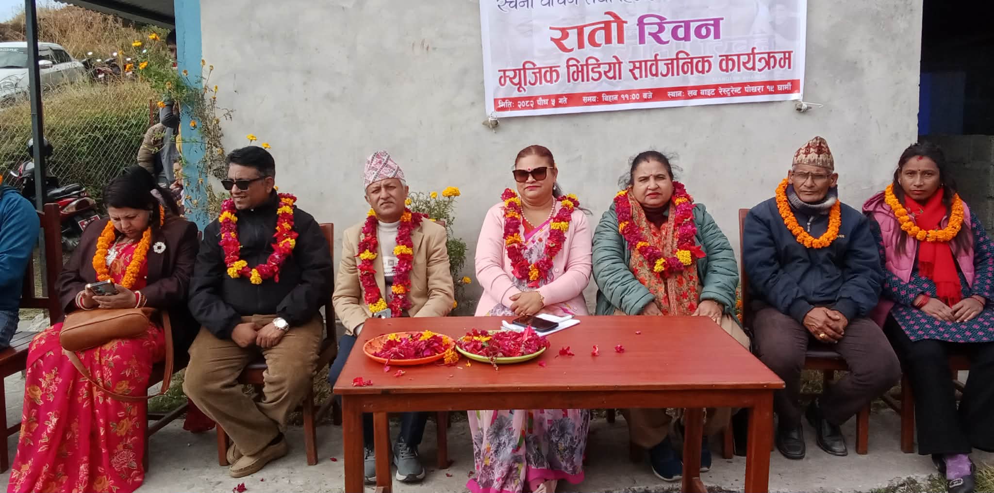 पौडेलको स्वर र शब्द रचना रहेको म्युजिक भिडियोको शनिबार एक कार्यक्रमका बीच सार्वजनिक भएको हो।शुक्ला साहित्य प्रतिष्ठान पोखराले आयोजना गरेको कार्यक्रममा प्रमुख अतिथि साहित्यकार प्राध्यापक शिव त्रिपाठीले सार्वजनिक गरे । कार्यक्रममा बोल्दै उनले लोक लयमा आधारित पप संगीत सुस्ताएको समयमा ‘रातो रिवन’ संजीवनी बनेर आएको बताए। उनले गीत सिर्जनामा मात्र नभई स्वर र अभिनयमा पनि सर्जक पौडेल अब्बल रहेको भन्दै प्रशंसा गरे।