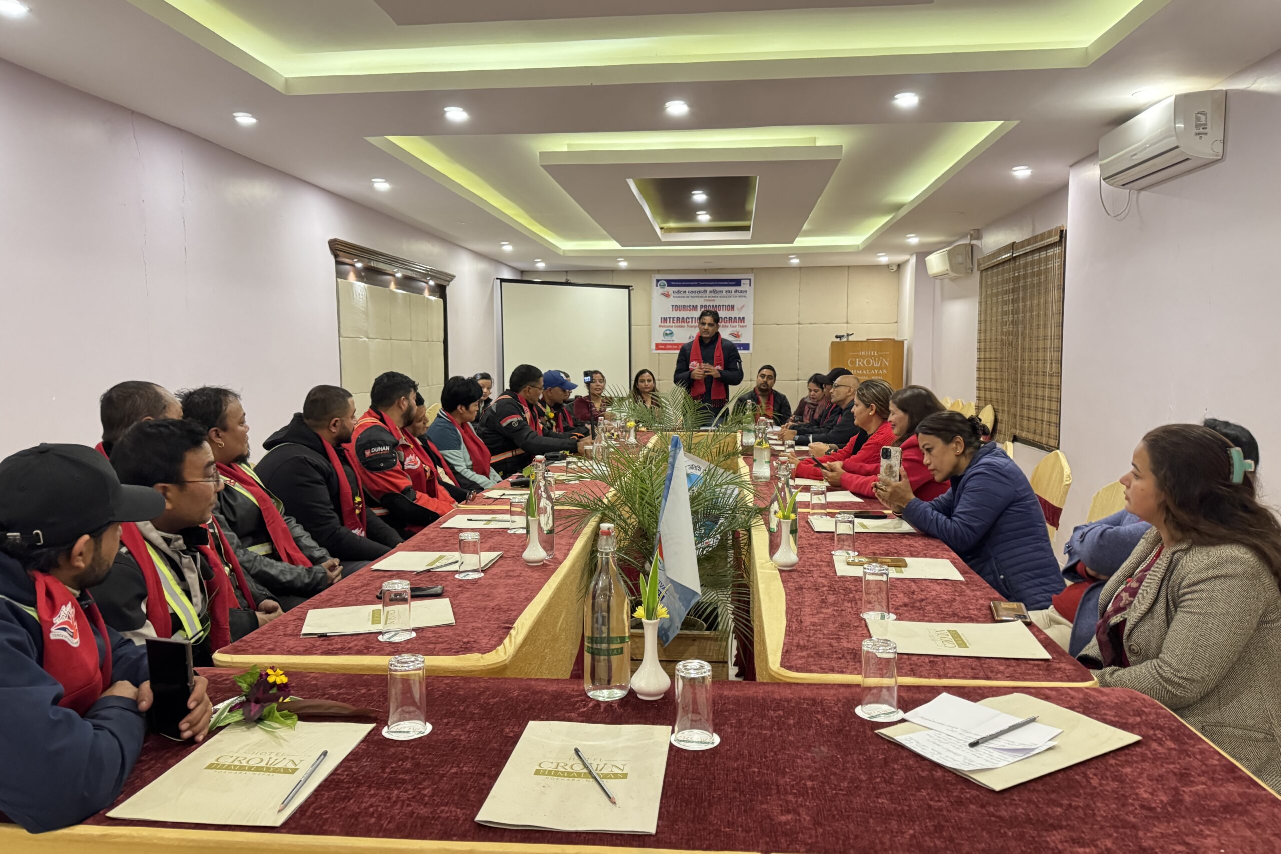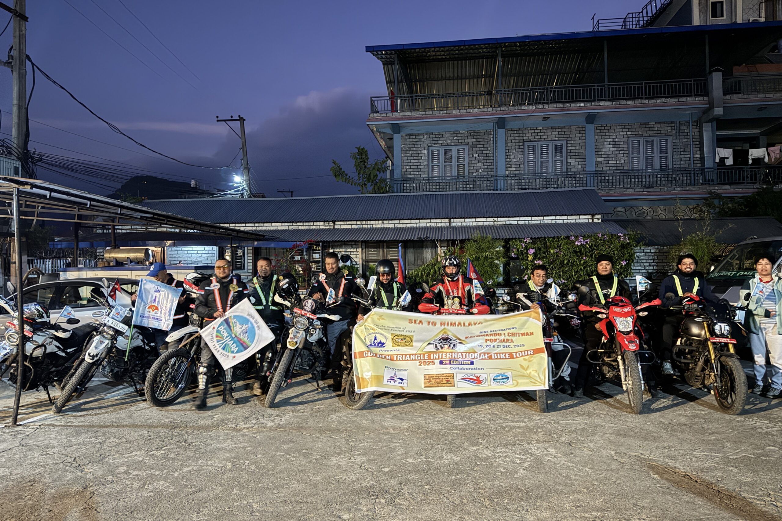 एक्सपल्स राइडर नेपाल क्लबद्वारा पर्यटन प्रवद्र्धनको लागि आयोजित बाइक टूरमा १२ जना सहभागी छन् । उक्त टोलीसँग टेवानले पोखराको पर्यटन प्रवद्र्धन सम्बन्धमा अन्तरक्रिया समेत गरेको छ । क्लबका अध्यक्ष कुन्दन श्रेष्ठका अनुसार पहिलो दिन काठमाडौंबाट हिँडेको टोली शुक्रबार चितवनको सौराहामा बास बसेको थियो । सौराहाबाट शनिबार पोखरा आएको टोली आइतबार लमजुङको घलेगाउँ पुगेको छ । काठमाडौं, चितवन र पोखरालाई ‘गोल्डेन ट्र्यांगल’ मानेर पर्यटन बोर्डको समेत सहयोगमा क्लबले बाइक टूर आयोजना गरेको हो । उक्त टूरका क्रममा यी सहरसहित नजिकका पर्यटकीय गन्तव्यको प्रवद्र्धन गरिने उनले बताए । ‘विश्व पर्यटन दिवसका अवसरमा सेप्टेम्बर २७ मै बाइक टूर गर्ने योजना जेन–जी आन्दोलनका कारण धकेलियो,’ उनले भने, ‘कोरोना महामारीपछि ध्वस्त भएको पर्यटन क्षेत्रलाई टेवा पु¥याउन आन्तरिक पर्यटन प्रवद्र्धनमा बाइक टूरले भूमिका खेल्नेछ ।’
