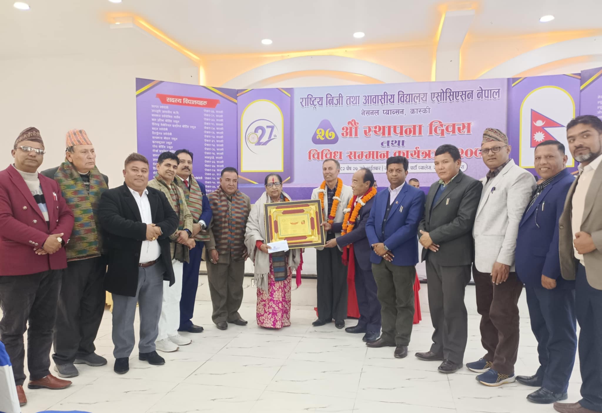 कार्यक्रममा संस्थाले यस वर्ष शिक्षा÷साहित्यसेवा सम्मान–२०८२ बाट बरिष्ठ गायिका तथा साहित्यकार प्राज्ञ हरिदेवी कोइरालालाई सम्मान गरेको छ । कोइरालालाई कार्यक्रमका प्रमुख अतिथि नेसनल प्याब्सनका संस्थापक अध्यक्ष बसन्तबहादुर श्रेष्ठ, वरिष्ठ उपाध्यक्ष याम खड्का, उपाध्यक्ष राम बहादुर मोची, उपाध्यक्ष विष्णु पराजुली र कास्कीका अध्यक्ष हेमन्त अधिकारीले नगद २५ हजार सहित सम्मान पत्र, दोसल्ला ओढाई सम्मान गरेका थिए।