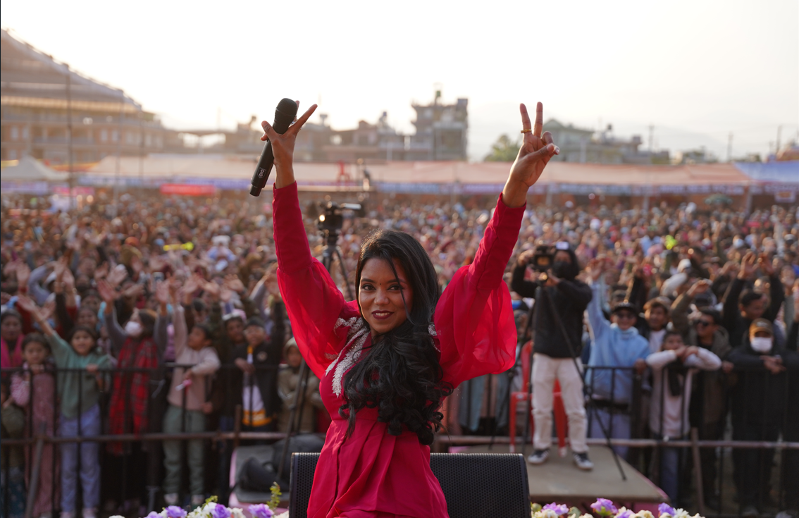 पोखरा । पोखराको अमरसिंह खेल मैदानमा जारी १४ औं संस्करणको पोखरा महोत्सवमा दर्शकको भीड लागेको छ । महोत्सवको तेस्रो दिन हजारौ दर्शकले महोत्सवको अवलोकन गरे । महोत्सवमा बिहीबार चर्चित लोकदोहोरी गायिका शान्ति श्री परियारको प्रस्तुतीमा दर्शकहरुले भरपुर मनोरन्जन लिए । शान्तिश्री संगै लोकदोहारी कलाकारहरु चोलेन्द्र पौडेल, शिवहरी ढुंगाना, सरस्वती लामिछाने, सन्तोष सुवेदी, पार्वती गुरुङ, रमेश थापा मगर लगायतले प्रस्तुती राखेका थिए ।