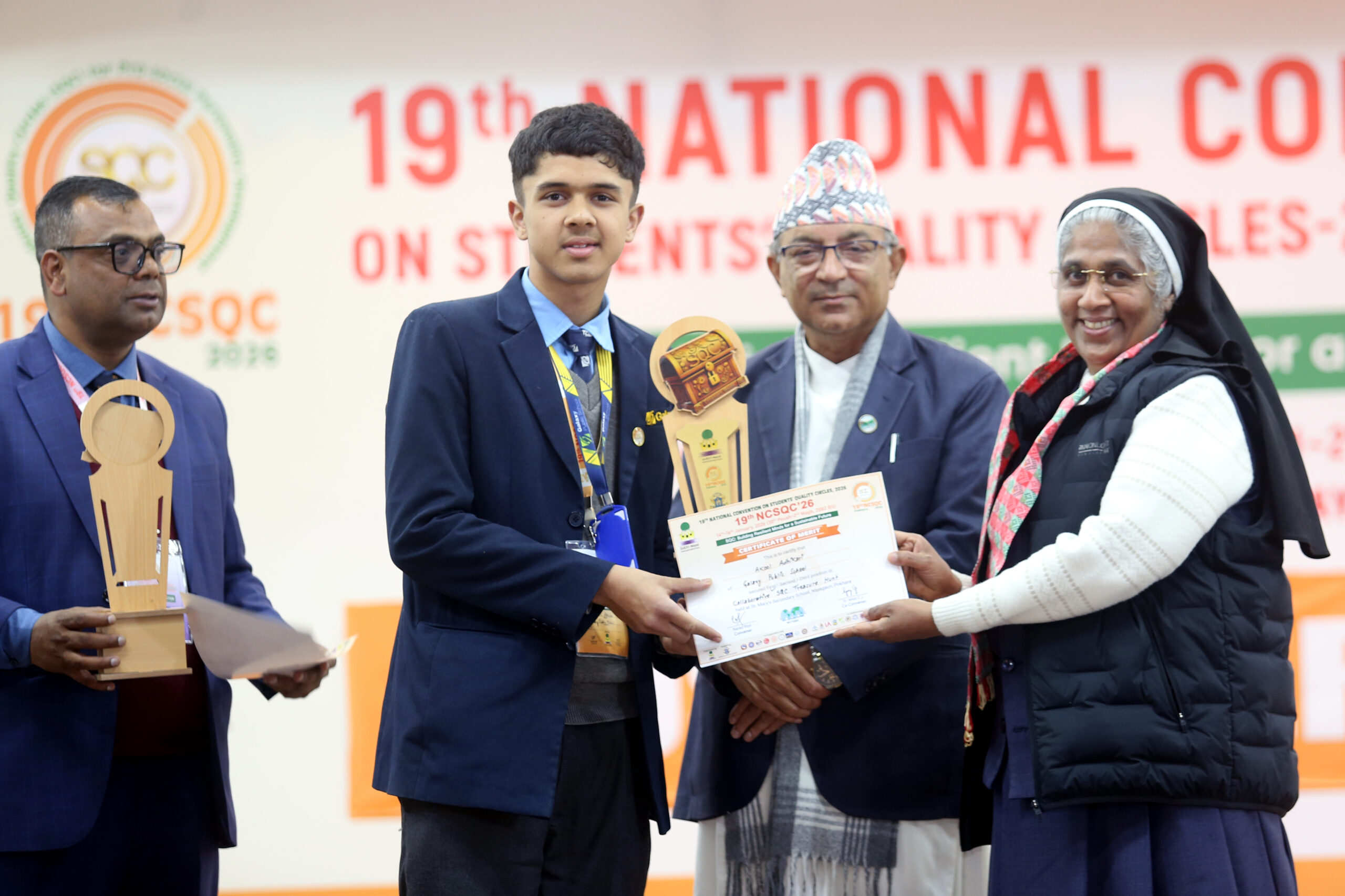 पुरस्कार वितरण समारोहमा क्वेष्ट नेपालका अध्यक्ष नारद कुमार रिजाल, क्वेष्ट नेपालका प्रमुख संरक्षक प्रोफेसर दिनेश चपागाईं, आयोजक विद्यालयकी प्रिन्सिपल सिस्टर जेसी, क्वेस्ट नेपालका संस्थापक सल्लाहकार फादर लरेन्स मनियार लगायतले पुरस्कार प्रदान गरेका थिए ।