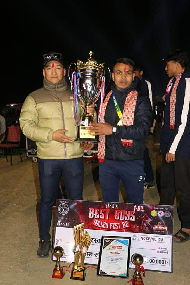 वेस्ट ब्वाइज क्लब भिमाद तनहुँको आयोजनामा भिमाद रंगशालामा सोमबार भएको फाइनल खेलमा सशस्त्र प्रहरी बलको एपिएफ क्लबलाई ३–२ को सेटले पराजित गर्दै घले हार्भेस्टिङ विजयी भएको हो । घले हार्भेस्टिङले उपाधी संगै नगद तिन लाख एक हजार ९९ रुपैयाँ, उपविजेता बनेको एपिएफले नदग दुई लाख एक सय ९९ रुपैयाँमा चित्त बुझायो ।