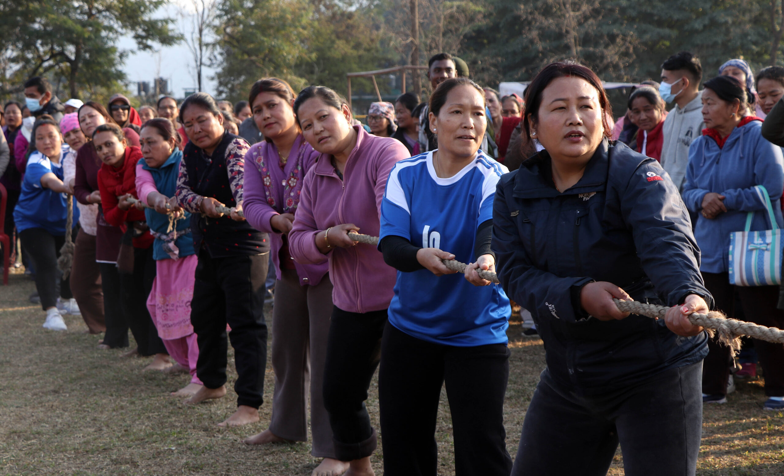 पोखरा । पोखरा महानगरपालिका वडा नं १५ द्धारा आयोजित वडा स्तरीय खेलकुद महोत्सवमा बुधवार डोरी तान र ब्याडमिन्टन तर्फको खेल सम्पन्न भएका छनभने भलिवल, यूनि हक्की र फुटवल प्रतियोगिता जारी रहेका छन । बुधवार आयोजित डोरी तान प्रतियोगितामा जनजागृति र संगम बीचको खेलमा जनजागृती आमा समुह प्रथम भएका छन । प्रतियोगितामा सानी मजुवा आमा समुह बसुन्धरा मार्ग तृतीय भएका छन ।