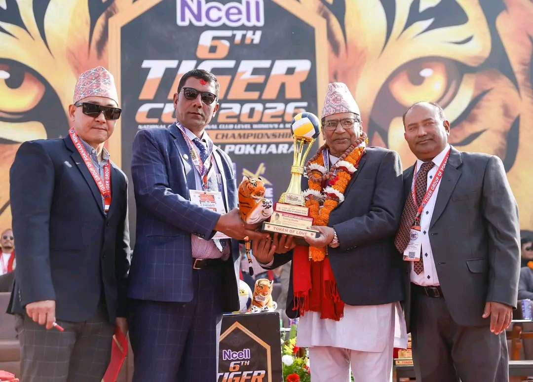 टाइगर ग्रुप अफ पोखराको आयोजनामा शुक्रबारदेखि सुरु भएको एनसेल छैटौं टाइगर कप राष्ट्रिय तथा अन्तर्राष्ट्रिय आमन्त्रित खुल्ला क्लब च्याम्पियनसिप महिला तथा पुरुष भलिबल प्रतियोगिताको उद्घाटन गर्दै उहाँले खेल क्षेत्रको विकास राष्ट्र विकासको महत्वपूर्ण आधार रहेको उल्लेख गर्नुभयो ।