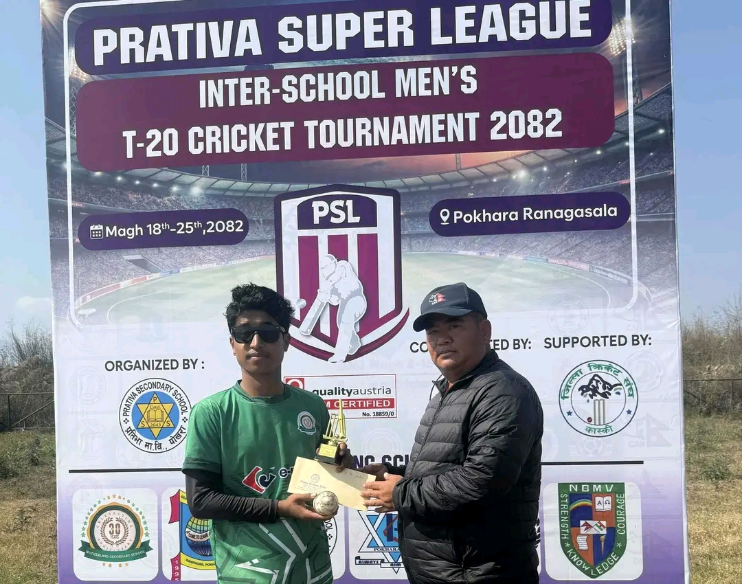 खेलमा मदरल्याण्डका ६ विकेटधारी विलोभ मल्ल प्लेयर अफ द म्याच घोषित भए ।