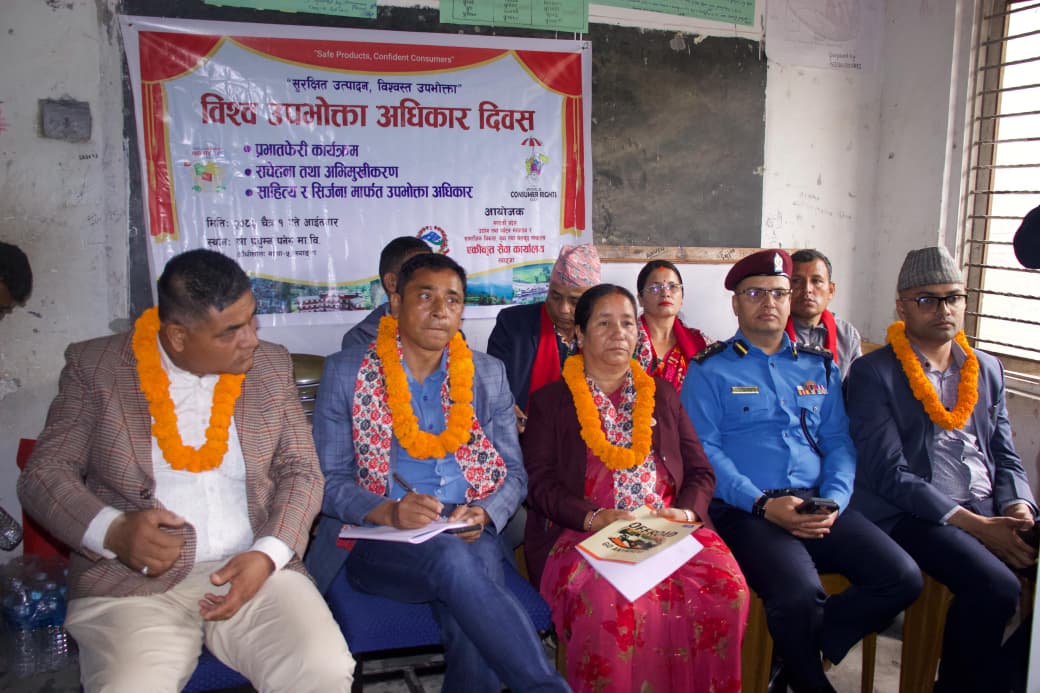 उपभोक्ता मञ्च स्याङ्जाका अध्यक्ष राजेन्द्र मरासिनीले उपभोक्ताहरु आफूले प्रयोग गर्ने सामानहरुको गुणस्तर, मूल्यको बारेमा सचेत हुनु पर्ने बताउनुभयो । एकिकृत सेवा कार्यालय स्याङ्जाका प्रमुख जीवन पौडेलले आफ्नो उपभोग्य अधिकार सुनिश्चित गर्न सर्वप्रथम स्वयं जागरुक हुनुपर्ने भन्दै उहाँले सेवा दिने निकाय, उद्यमी, व्यवसायीलगायत सबै सरोकारवालाले उपभोक्ताको अधिकारको संरक्षण र सम्मान हुने गरी काम गर्न आग्रह गर्नु भएको छ ।