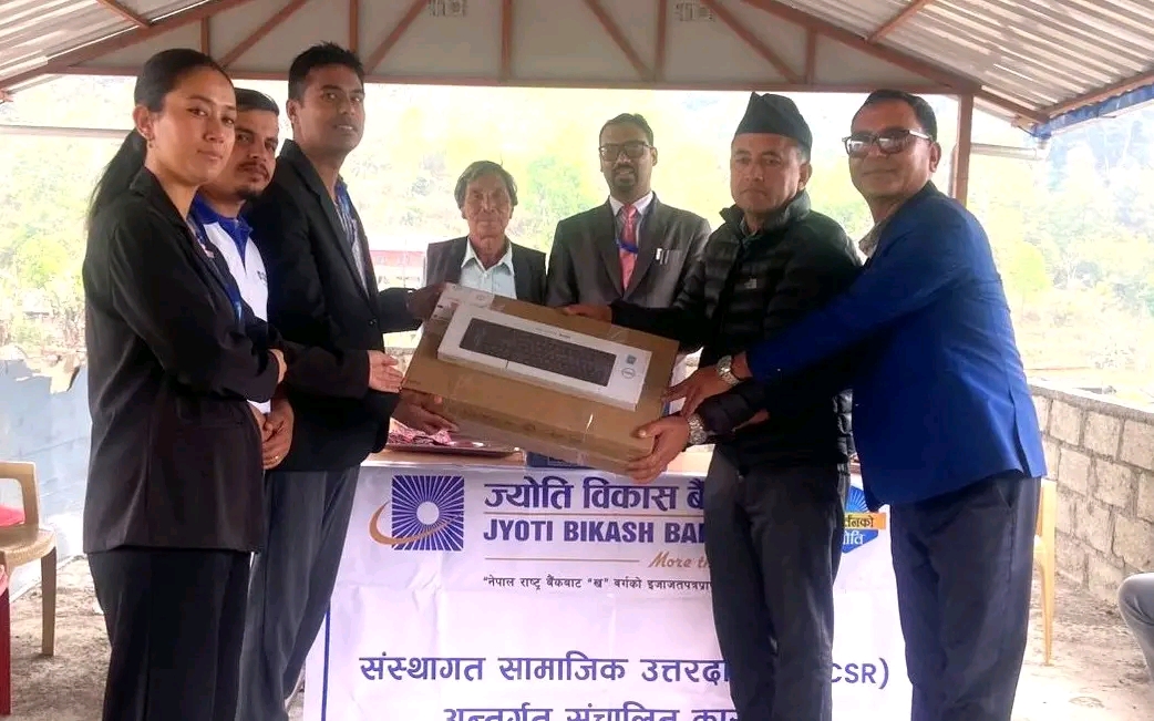बैङ्कको सामाजिक उत्तरदायित्वअन्तर्गत विद्यालयलाई १ थान कम्प्युटर हस्तान्तरण गरिएको हो ।शुक्रवार विद्यालयमा आयोजित कार्यक्रममा शाखा प्रबन्धक रेशमलाल श्रेष्ठले विद्यालय व्यवस्थापन समितिका अध्यक्ष मोहनबहादुर थापा र शिक्षक अभिभावक सङ्घका अध्यक्ष डिबी विश्वकर्मालाई कम्प्युटर हस्तान्तरण गरे ।