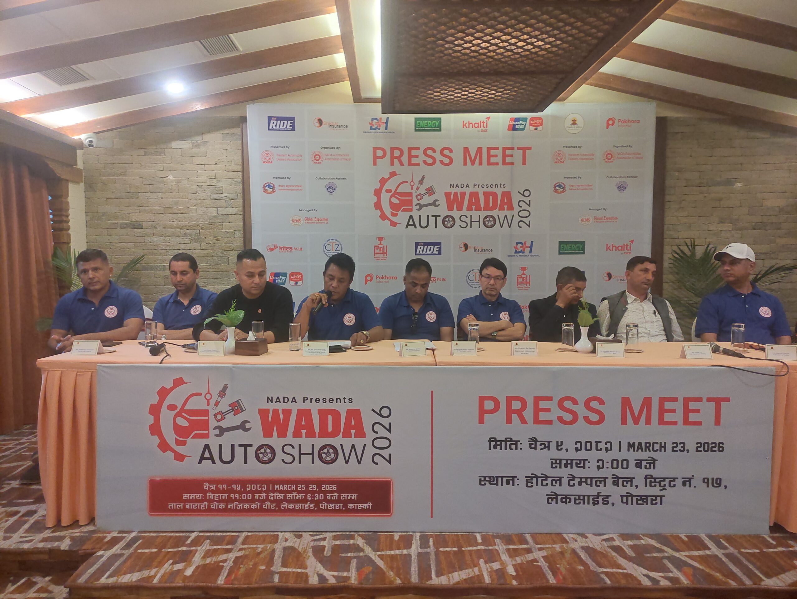 पोखरा । पोखराको लेकसाइड तालबाराहीचोक स्थित बाराही खेल मैदानमा चैत ११ गतेदेखि ‘दोस्रो नाडा प्रेजेन्ट्स वाडा अटो शो २०२६’ आयोजना हुने भएको छ । अटोमोबाइल एसोसियसन अफ नेपाल (नाडा) को प्रस्तुतीमा पश्चिमाञ्चल अटोमोबाइल डिलर्स एसोसियसन (वाडा) को आयोजनामा हुने यो शो चैत १५ गतेसम्म सञ्चालन हुने छ ।
