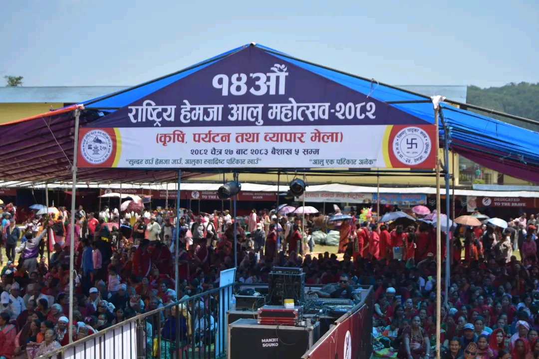पोखरा । राष्ट्रिय हेमजा आलु महोत्सव आजदेखि सुरु भएको छ । “सुन्दर ठाउँ हेमजा जाउँ, आलुका स्वादिष्ट परिकार खाउँ, आलु एक परिकार अनेक” भन्ने नाराका साथ सुरु उक्त महोत्सव आउँदो वैशाख ५ गतेसम्म चल्नेछ ।